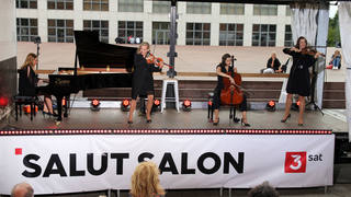 Zwei Violinen, ein Violoncello, ein Flügel, vier charmante Damen und ein 12t-Truck. Perfekt für eine ungewöhnliche Konzerttour zu ungewöhnlichen Zeiten. Das Hamburger Quartett Salut Salon spielte bei seiner Truck-Tour für Bewohner und Mitarbeiter der Seniorenresidenz Augustinum an der Elbe, am Gemüsehof „Wigand und Christian Meyer“, vor der Hamburger Kunsthalle und für die Kinder und Trainer der „Rabauken“ des FC St. Pauli.
